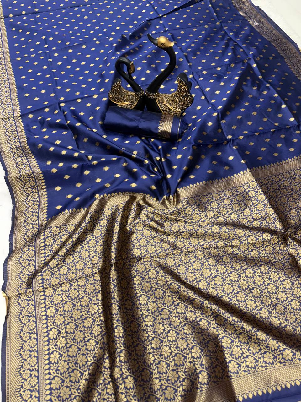 With a lightweight feel of 430 grams, it drapes beautifully without heaviness, making it ideal for both intimate family weddings and grand Indian celebrations. The smooth texture and classic Banarasi appeal enhance your ethnic charm effortlessly.