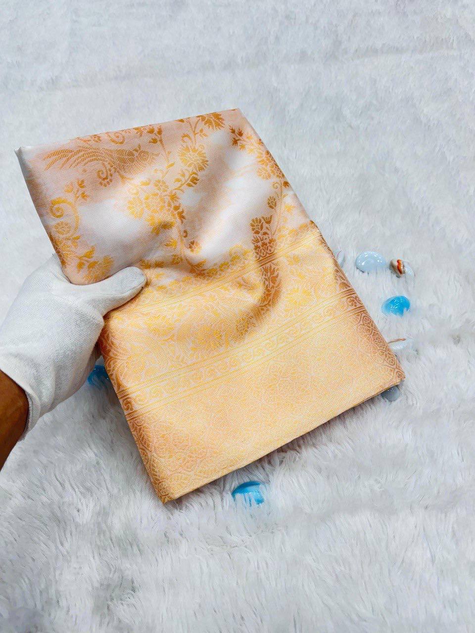 With a comfortable weight of 460 grams, it offers a graceful fall without heaviness. Whether it’s an intimate family wedding or a big fat Indian wedding, this saree ensures your outfit never comes in between your fun and celebrations.
