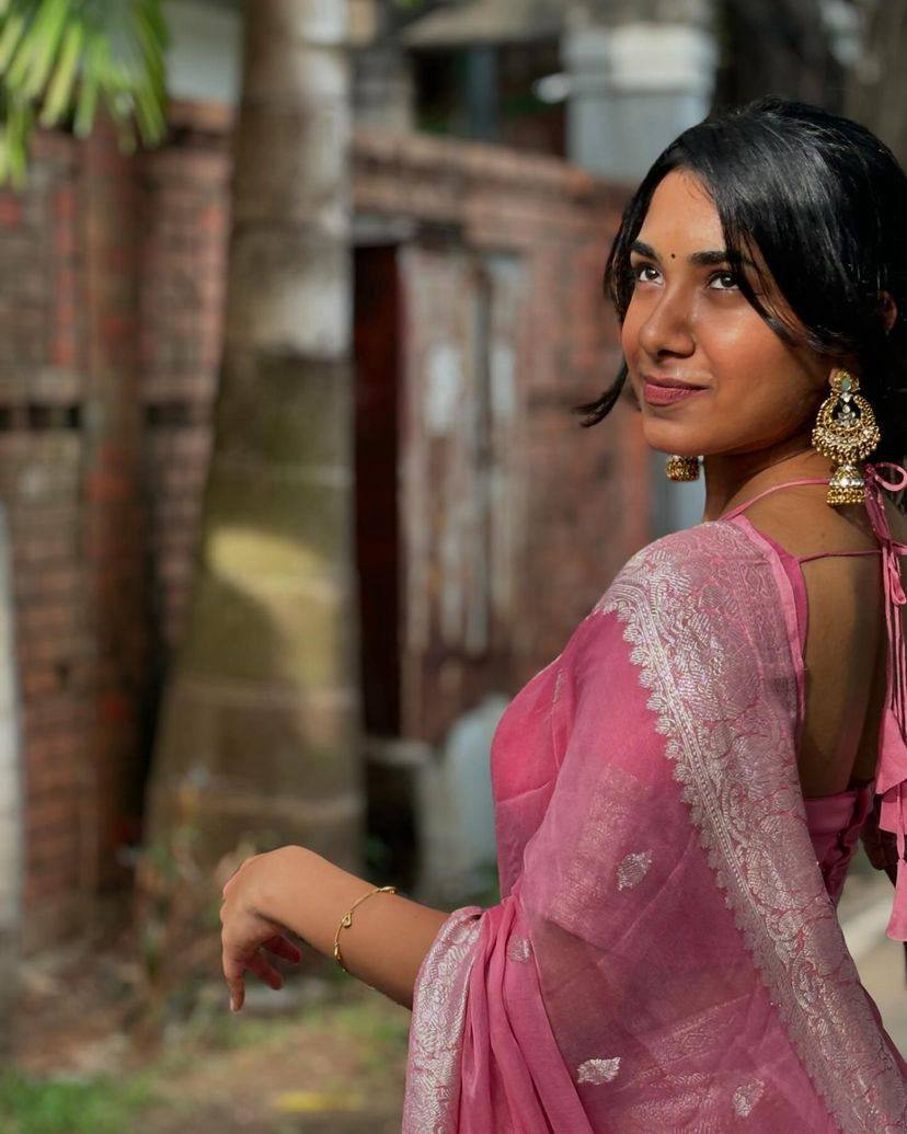 The saree features an attractive and charmful slab texture, giving it a trendy yet elegant appearance. It comes with a rich weaving blouse piece, adding a classy finishing touch. With a perfect lightweight of 380 grams, this saree is easy to drape and extremely comfortable.